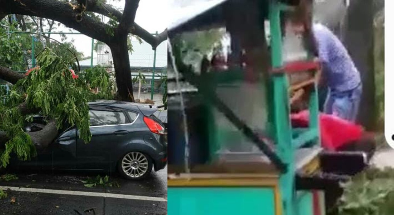 Kini 3 mobil di taksir kerugian sekitar 1,2 milyar, dari 3 mobil yaitu, 1 mobil Honda, 1 mobil sigra dan 1 lagi fajero, rata-rata warnanya hita. Hujan deras dan angin kencang dan pohon pada tumbang sekitar pukul 13.49,