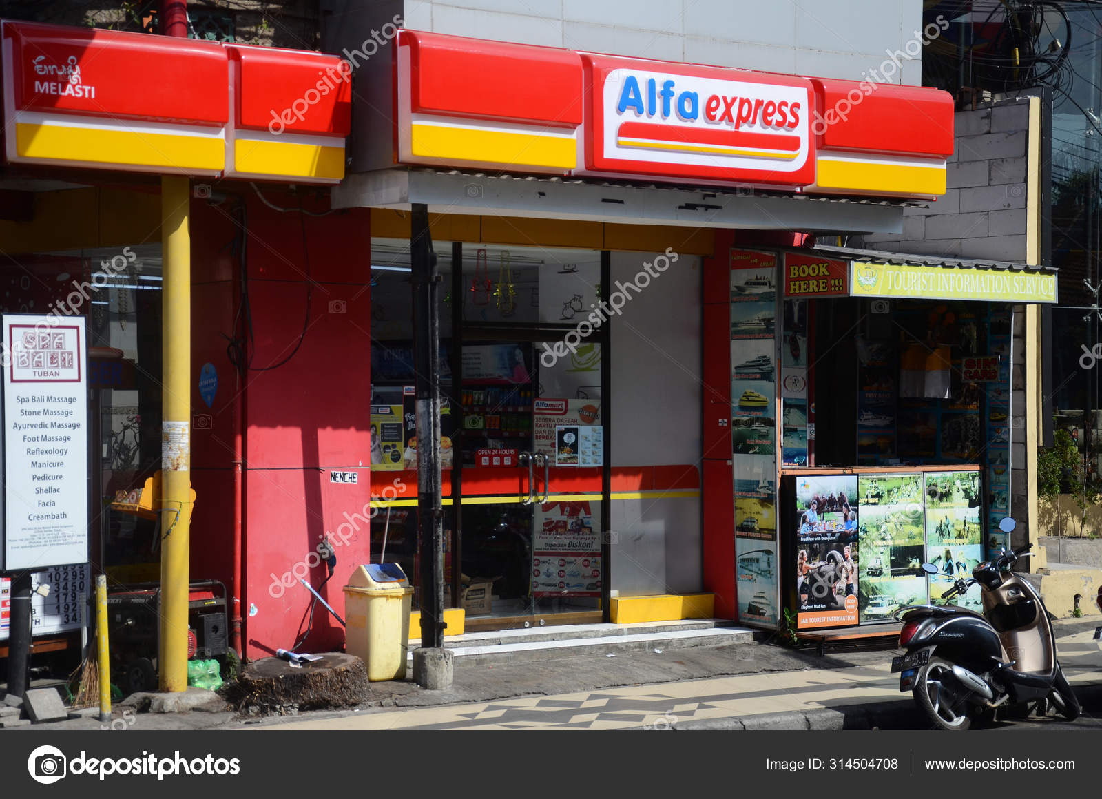 Bali, Indonesia- 18 Oct, 2019: Entrance of a Alfa Mart grocery shop. Alfa Mart is a Indonesian retail store chain