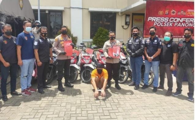 AKBP Wahyu Sri Bintoro SH., SIK., MSi Kapolresta Tangerang membeberkan, Unit Reskrim Polsek Panongan pada minggu (07/11/2021) berhasil mengamankan 1 orang pelaku pencurian bermotor berinisial O. O sempat jadi DPO, karena kelihai dalam perampok khusus motor ini di tangkap oleh kesatuan Polsek Panomgam dan Polresta Tangerang Kab Polda Banten, senin (13/12)