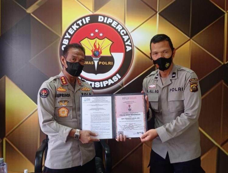 Aipda Muhammad Aliudin, S.H, yang juga merupakan personil Pembuat Majalah Tri Brata News Sumsel, meraih penghargaan 1000 Polisi Baik Indonesia, dari Ketua Umum Persatuan Pewarta Warga Indonesia (PPWI) Tahun 2021, rabu (08/12).