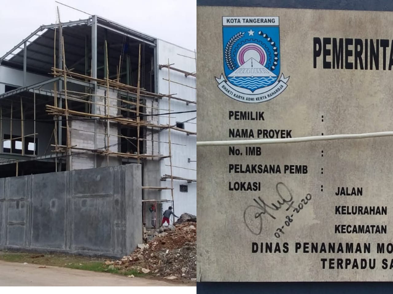 DIDUGA PLANG PERIJINAN PALSU BERTENGGER DISALAH SALAH SATU BAGUNAN DI WILAYAH BATU CEPER