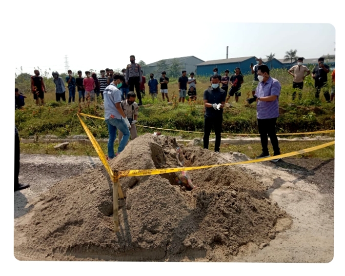 Dua Orang Pelaku Pembunuhan & Pembuangan Jasad Wanita Dalam Urugan Pasir, Tertangkap setelah polisi olah TKP. Diduga motif pembunuhan tersebut dilatar belakangi oleh nafsu birahi pelaku terhadap korban yang menolak diajak berhubungan badan.