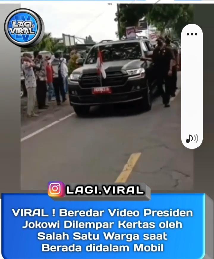 Dalam unggahan video viral itu memperlihatkan Jokowi sedang berada di dalam mobil presiden dengan kawalan Pasukan Pengamanan Presiden (Paspampres). Saat itu rombongan mobil presiden berjalan pelan, bahkan kaca pintu mobil yang ditumpangi Jokowi dibuka.