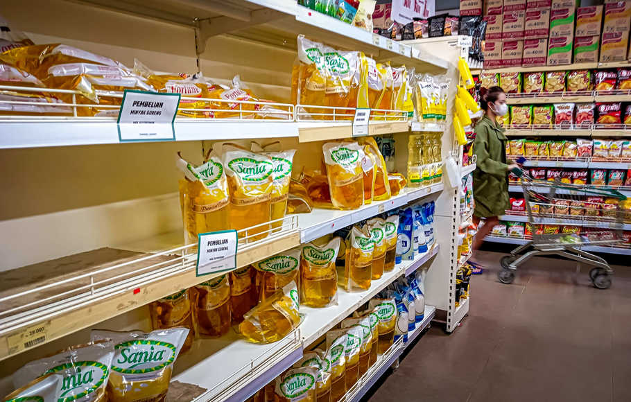BeritaSatu Photo/Ruht Semiono Pasokan Minyak Goreng Murah - Persediaan minyak goreng kemasan yang dijual supermaket di Jakarta, Kemarin. Kementerian Perdagangan (Kemendag) berjanji pasokan minyak goreng murah sesuai harga eceran tertinggi (HET) akan lancar dalam seminggu ke depan. Kemendag akan mengontrol ketat suplai produksi minyak sawit untuk dalam negeri sebelum diekspor oleh para produsen
