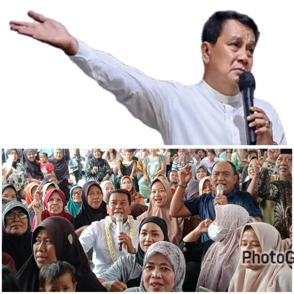 “Ngahaja kula datang ka diyeu mawa dulur kembar (sengaja saya datang ke sini bersama saudara kembar saya) Pak Aziz Gagap,” imbuhnya yang disambut ketawa ibu-ibu.