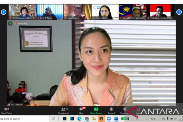 Kegiatan diskusi virtual bertemakan “Membangun kerjasama antar pemuda untuk mencapai SDGs dalam masa recovery” yang diselenggarakan oleh United Nations Development Program (UNDP), United Nations Volunteers (UNV), dan United Nations Children’s Fund (UNICEF) yang diwakili oleh Generation Unlimited, Senin (18/4/2022).