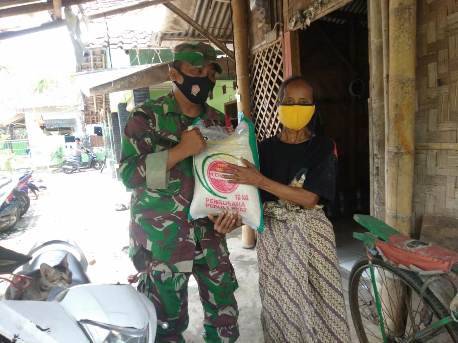 Koramil 07/Kresek Kodim 0510/Tigaraksa mendistribusikan beras bantuan dari Pemerintah untuk masyarakat yang terdampak PPKM Darurat Level 3 untuk memutus rantai penyebaran Virus Covid 19 di wilayah binaan Koramil 07/Kresek, Rabu (27/10/2021).
