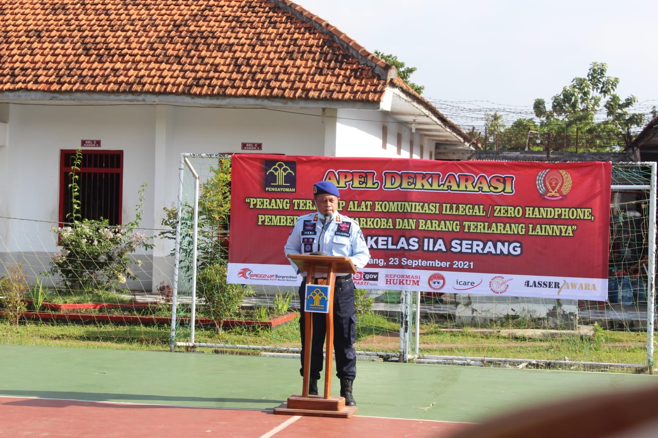 Lembaga Pemasyarakatan Kelas IIA Serang menggelar Apel Deklarasi perang terhadap alat komunikasi ilegal atau Zero Handphone, Pemberantasan Narkoba dan barang terlarang lainnya. Kamis (23/09/2021)