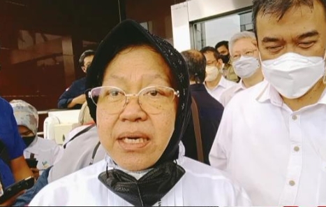 Menteri Sosial Tri Rismaharini merespons kasus temuan timbunan Bantuan Sosial (Bansos) Beras Presiden Joko Widodo (Jokowi) di dalam tanah kawasan Kampung Serab, Sukmajaya, Kota Depok, Minggu (31/7/2022).